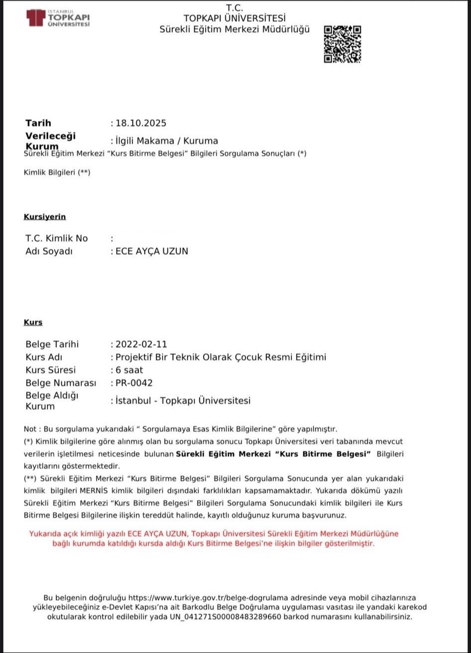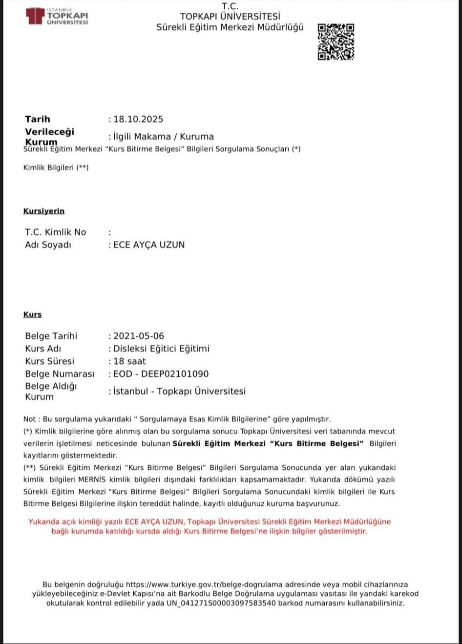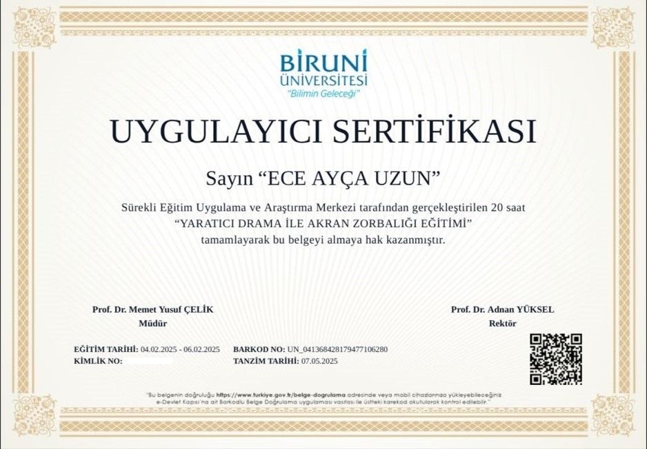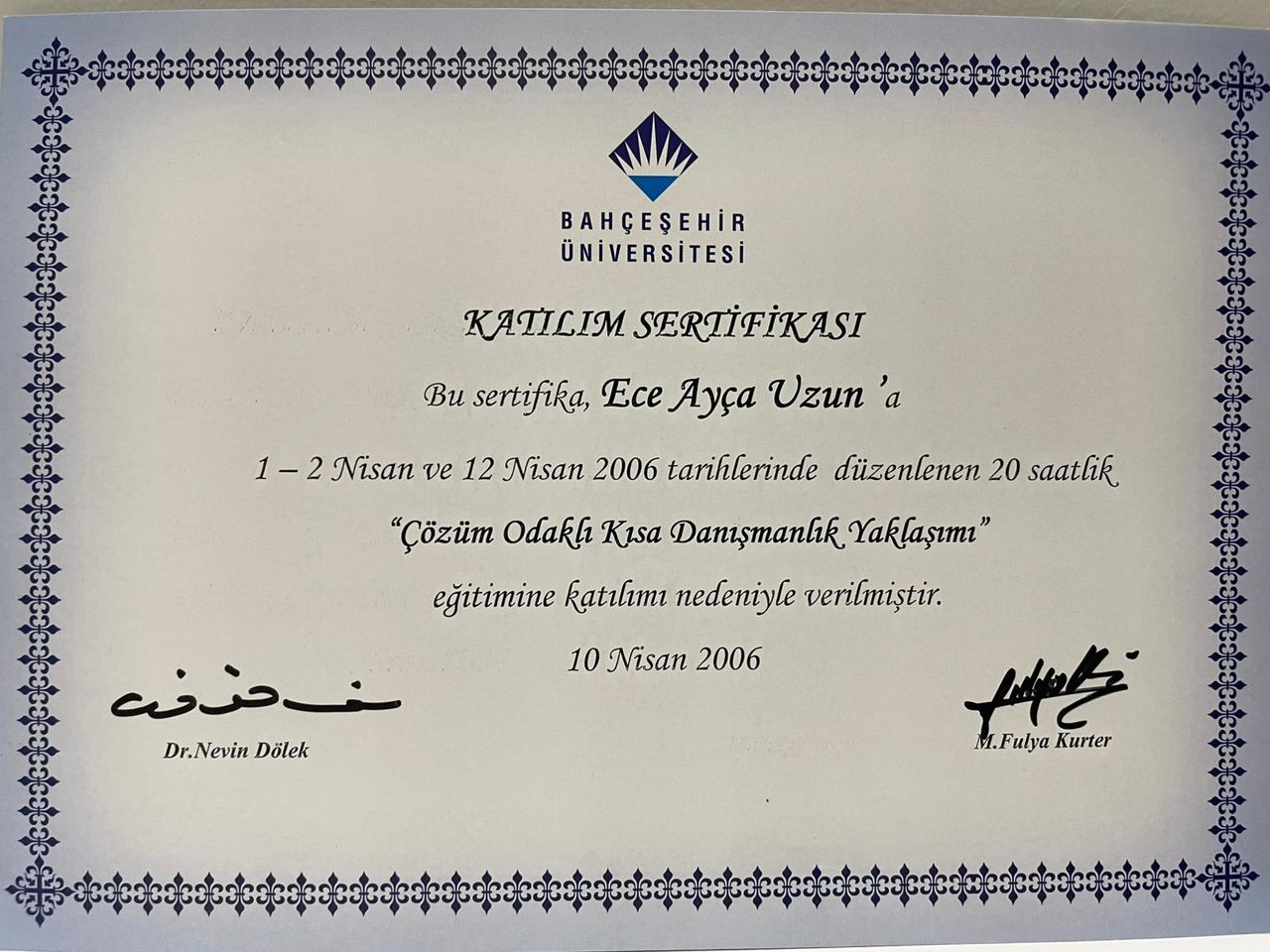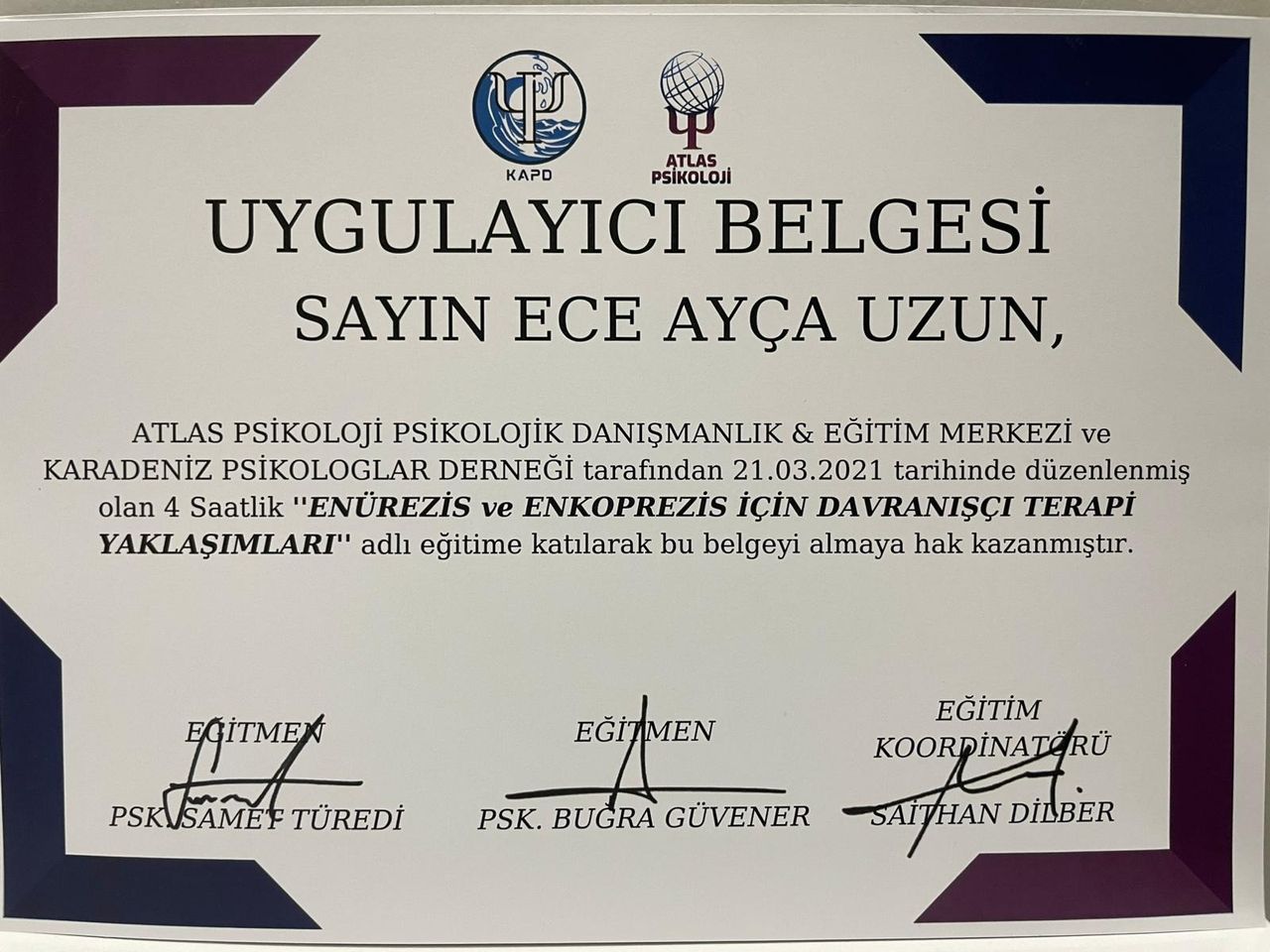 "Psikofarmakoloji" ve "Kilnik Nörobilim" alanlarındaki çalışmalarıyla dünyanın en etkili bilim insanları arasına giren Prof. Dr. Murad ATMACA' dan "Bilişsel Davranışçı Terapi Eğitimi"; Doç. Dr. Onur Okan DEMİRCİ' den "Temel ve İleri Düzey EMDR Eğitimi" almıştır.